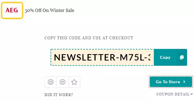 You will redirect to our offer page where you can copy the voucher code for AEG. ⇓